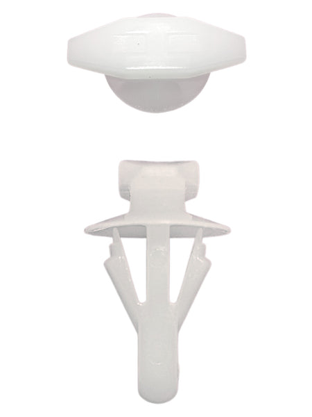 Panel Retaining Clip – Weatherstrip. Stem Length: 11mm, Top Head Size: 15mm x 5mm, Bottom Head Size: 9.3mm, Stem Diameter: 7mm. Hyundai OEM: 82132-27100. Suitable for models including Hyundai Accent, Hyundai Elantra, Hyundai Santa Fe, Hyundai Sonata, Hyundai Tiburon, Hyundai Tucson